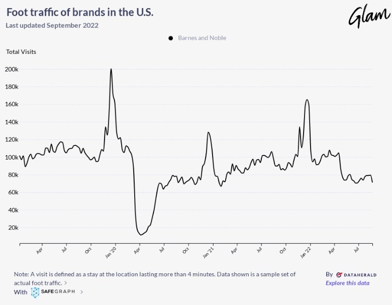 With so much buzz around BookTok and its recommended must-read novels, you'd think that book retailers would be riding high. But booksellers that still pursue a strong in-store shopping experience haven't seen any such success hit their foot traffic. Take, for example, the chain that used to dominate the literary landscape: Barnes & Noble. While Barnes & Noble (B&N) may boast welcoming vibes, convenient Starbucks access, and an all-too-tempting stationery section, its in-store visitors are in steady decline.