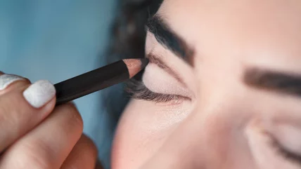 Unlike the typical cut crease, this makeup look is actually fairly simple for beginners — all you need is a glitter liner or shimmery liquid eyeshadow. After applying the rest of your eye look, find where your eye naturally begins to crease towards your inner corner. Begin drawing your line slightly above it, continuing until you reach around where your pupil is. From there, slightly blend upwards to diffuse the product, or keep it sharp for a more precise look. Clean up underneath your line with a cotton swab or concealer, and there you have it — a glitter cut crease.