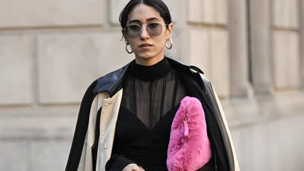 Let's be clear: there really are no good or bad colors. It's all about the context in which you see the colors. So, when you pair a red bag with a black coat, this color, which is known for being stimulating and exciting, really packs a punch. It's the classic high-impact pairing. Adding a textured red bag boosts interest and elevates the look, so why not give it a shot?