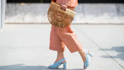 Summer 2023 is all about neoncore, with lively neon colors showing up in unexpected places. While there's nothing wrong with wearing classic black or neutral-colored linen, you can brighten things up by choosing an alternative linen pants suit color nobody would expect. One possibility is a neon green linen suit as pictured above. If you're worried the look is getting too matchy-matchy, accessorize with a handbag in a different color. When this is your weekend wear, shimmery green sandals would enhance the ensemble perfectly. Pulling this look off at work, though, might require closed-toe shoes.