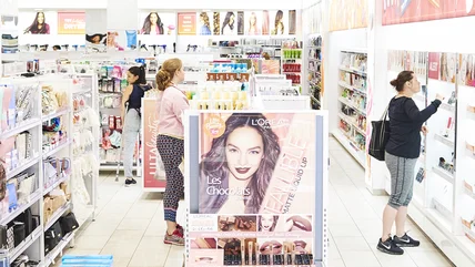 Also at the front of the store are skin care products in both the mass and prestige categories. Adjacent to this are wellness and bath and body products. This leads to products for the hair, along with makeup and the salon. Even the checkout area is thoughtfully conceived, with a series of carrels featuring travel- and trial-sized items that may entice shoppers for a further look before they check out.