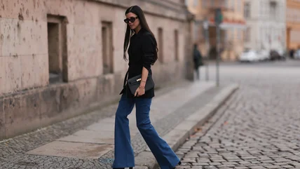 A '60s and '70s favorite, the flared jean, is creeping back into the fashion scene. Flared jeans are also known as "bell bottoms" due to their fit. The jeans are more fitted to the skin at the thighs and start flaring into a bell shape just below the knees. A few years after their first fashion emergence, the jeans slowly trickled out of style and were rarely seen again until the late '90s and early 2000s. Thanks to the resurgence of Y2K-inspired fashion, flared denim has made its way back into the fashion scene. Today, we are seeing flared denim available at some of our favorite retailers and being worn by countless celebrity style icons.