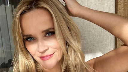 Here Reese Witherspoon shows off a gorgeous hairstyle featuring a side-swept mass of long, highlighted locks. This style flatters Witherspoon's heart-shaped face because the long layers create depth and texture, counterbalancing her delicate-looking jawline.