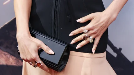 If you're looking to channel your inner trendsetter, an encapsulated nail is the way to do it. Almond Nails describe it best as gems and glitter captured inside two layers of nail product. This looks amazing next to your peaches and cream tips while adding a touch of personality.