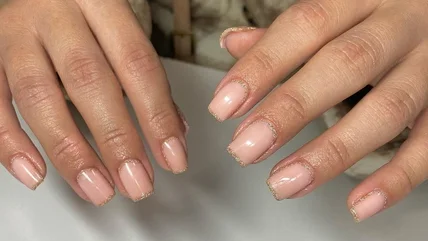 You may fall somewhere between a minimalist and a maximalist, a place which nail artistry seems to overlook most of the time. Now there's a compromise between minimalist scarcity of style and maximalist momentum of color, rhinestones, glitter, and more — the perfect medium is fully outlined gold glitter paired with encompassing neutral nails, or a thinly veiled clear coat for a glassy vibe.