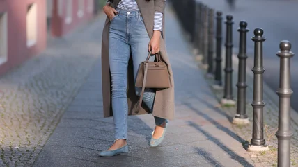If you prefer the denim trend over the balletcore trend and want to rock denim ballet flats, wear them with jeans to embrace the denim aspect of the look. The jean pants will help the denim ballet flats look edgier and more casual while staying ultra-trendy. Bonus points if the denim shades match!