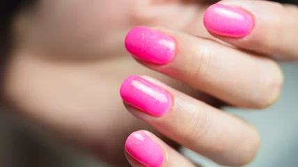 If you're looking for a deeper pink with a strong shimmery textured effect, you may want to try a hot pink polish that includes a magnet designed to activate the specks in the polish. This is next-level glitter and adds a metallic sheen, shimmer, and unique shapes to your Barbie-inspired nails.