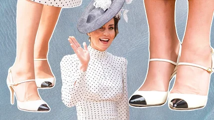 The same Mary Janes made yet another appearance at the Order of the Garter Service at Windsor Castle in the summer of 2023, where Kate dressed them up from other occasions. The beloved heels were designed by Jennifer Chamandi and paired with yet another polka-dot ensemble, this time by designer Alessandra Rich. The black cap detail on the shoes is perfectly coordinated with the chic designer hat.