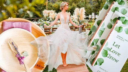 Having a plan for your decorations, clothing choices, flowers, and food is essential for throwing a sustainable wedding. Wedding planner and YouTuber Jamie Wolfer, whose videos are popular for DIY brides, stresses the importance of reducing the volume of items you purchase when planning an eco-friendly wedding. Especially until you're sure you will use it. "Before you go out and purchase anything, and I do mean anything for your wedding, make sure you have a plan," she says in her video "How to Have a More ECO-Friendly Wedding." "I got so excited to design and do things for my event that I just kind of went out and started buying things, and then realized later on that I purchased things I couldn't even really use ... make sure you have a plan going into it which will inevitably reduce the amount of things that you're buying."