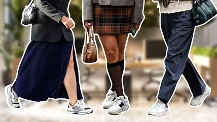 The slow slide into business casual has opened new horizons in what constitutes office-appropriate ensembles. Daring fashionistas are even turning yoga pants into business attire and finding ways to bring miniskirts into the office. And there's good news for sneakers enthusiasts: This experimental, boundary-pushing energy has extended into the realm of shoes. So long, pumps, and step aside, ballerina flats — sneakers are now joining the ranks of work-friendly footwear.