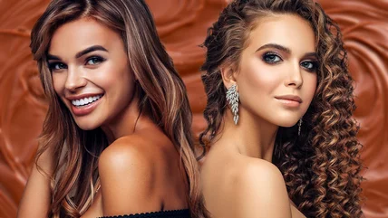 Curtain bangs look good on pretty much any hairstyle, including a liquid brunette cut. Swooped curtain bangs and barrel curls will give your hair stunning volume. Use a large curling barrel to create bouncy curls, and don't brush them out too much (if you need to, you can go through lightly with a wide-tooth comb or your fingers). This keeps the curls in their bouncy spiral shape, which gives liquid brunette locks extra dimension.