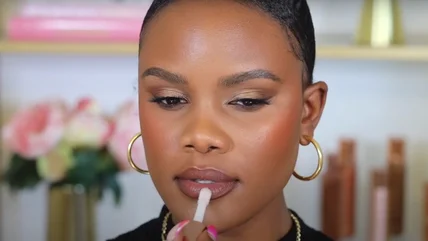 Next, swipe on a juicy gloss or satin lipstick. There's more leeway when it comes to selecting the lip color, so have fun combining different shades until you achieve your desired look. TikToker Merna Hermexz, for instance, uses a cool pink lip gloss for an ultra-soft take on the warm latte lip.