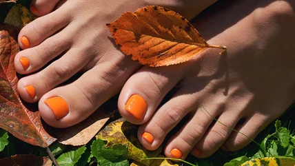 If none of these darker shades appeal to you, a great option for fall is a burnt-orange pedicure, which Mycah Dior exclusively confirms will be trending. Think of the color as orange, but slightly more muted, a tad darker, and less vibrant than your usual summer orange. The shade can be found everywhere in fall — whether you look at falling leaves or carved pumpkins.