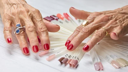 Meanwhile, people with melanated skin have even more leeway. "People who have a darker skin tone tend to have a bit more grace when choosing colors because the aging process may be less noticeable," says McCullough. When in doubt, ask your nail artist for age-appropriate nail polish recommendations that will still serve pizzazz without aging your hands.