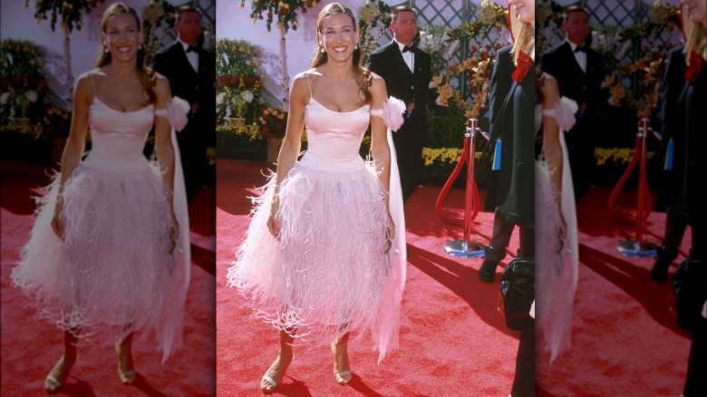 Looking back at Sarah Jessica Parker's decades-deep fashion portfolio, we know she can deliver a strong red-carpet game when she needs to. But there's one look that makes us pause and wonder, did she mistake the Emmys for a dance recital? The moment in question is the 2000 Emmy awards, where she was nominated for her role as Carrie Bradshaw in "Sex and the City." She channeled the quirky character in a custom Oscar de la Renta dress that felt very "Swan Lake," thanks to the ballerina-esque top and the feathered skirt. Then there was the arbitrary tulle flower she tied around her arm, which was pure Bradshaw. Was it a fun outfit that celebrated her character and her love of the stage? Yes. Did it look appropriate for TV's biggest night? Not so much.