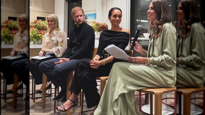 In Melbourne, the Duke and Duchess of Sussex attended a panel for the Nexus Summit, which brings prominent names together to discuss solutions for global issues. Her all-black outfit featured a shoulder-baring top, reportedly from Aussie label Beare Park. (The merino wool piece retails for approximately $258 at the time of writing.) When she was a working member of the royal family, this kind of skin display would've been headline worthy. Also, her open-toed sandals would've raised a few etiquette experts' eyebrows. Her footwear, reportedly from Emme Parsons (and now sold out), didn't please onlookers either. One X critic wrote, "She should NEVER be given a mic...or open-toed shoes." Another agreed, writing, "Manky toes out no-one wants to see," accompanied by a vomiting emoji.