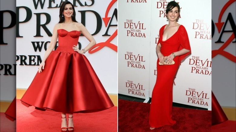 Almost exactly two decades ago, Hathaway attended "The Devil Wears Prada" New York premiere in, you guessed it, a red dress. However, the original red dress pales in comparison to its 2026 counterpart. Hathaway's 2006 dress included a matronly cape over her shoulders, which prematurely aged the actor, who was then just 23 years old.